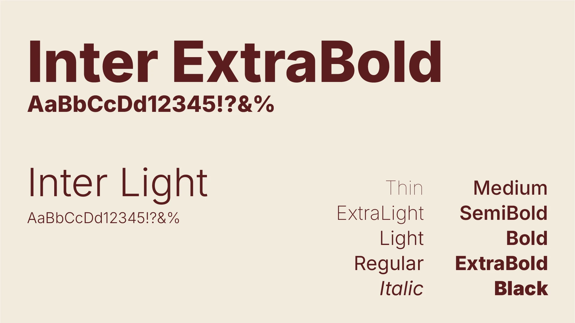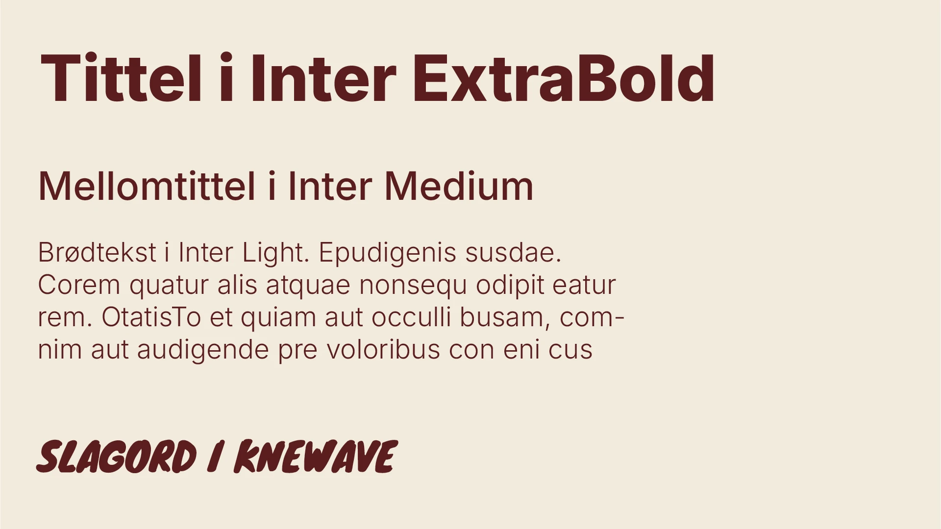 Sosial Ungdom bruker primært Google-fonten Inter, som også ligger i Canva. Den har flere vekter, men det er hovedsakelig ExtraBold som brukes i titler. I lengre mellomtitler og ingresser brukes vekten Medium, mens Light brukes til brødtekst. Det lurt å bruke lik linjeavstand. Bruk linjeavstand 1.2 i Canva.